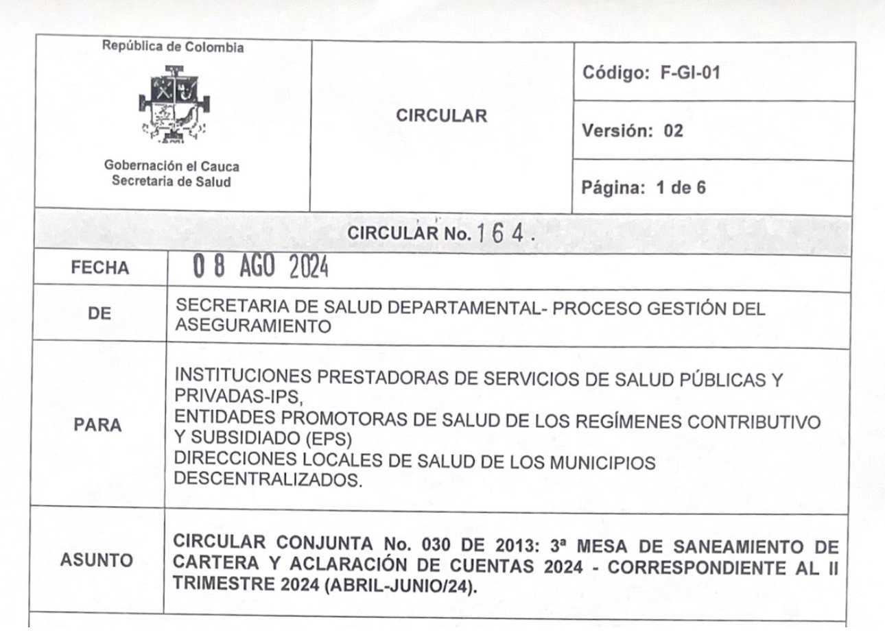 La Secretaría Departamental de Salud del Cauca, convoca a las instituciones prestadoras de servicios de salud públicas y privadas IPS, entidades promotoras de salud de los regímenes contributivo y subsidiado (EPS) y direcciones locales de salud de los municipios descentralizados a participar en la segunda mesa de cartera y aclaracion de cuentas correspondiente al I trimestre de 2024 (ene... Más información