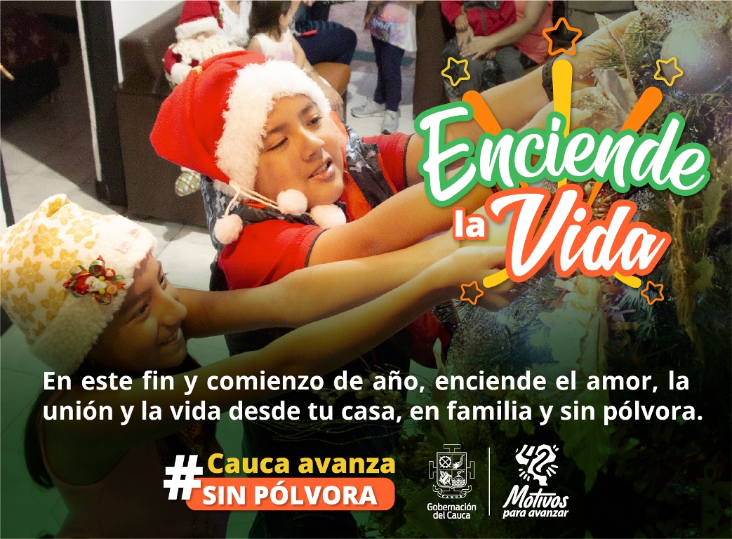 Con el objetivo central de sensibilizar a la comunidad en general, incluidos padres de familia, acudientes, organizaciones sociales y todos los actores, en torno a la prevención de lesiones por uso de la pólvora, la Gobernación del Cauca – Secretaría de Salud Departamental socializa la campaña “Enciende la vida. Cauca avanza sin pólvora” alrededor de la cual se pretende convocar a las 42 administraciones municipales del Cauca para que se unan al llamado de que en fin y comienzo de año y en el marco de la pandemia COVID_19 se celebre en casa, en familia y sin pólvora.